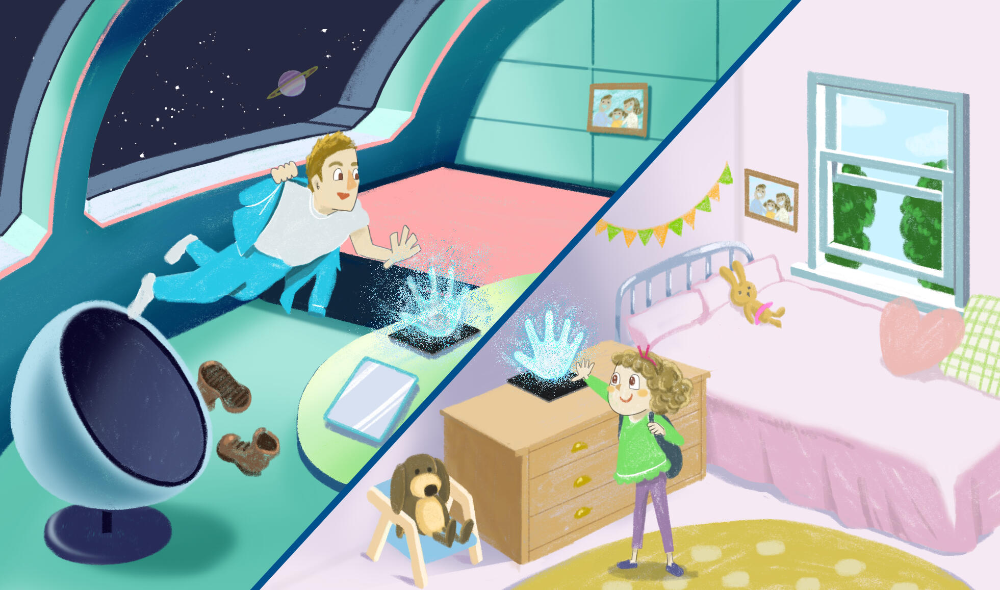 Our mission is to intuitively and emotionally connect people across distance in a non-verbal manner, fostering a warm sense of presence in the hearts of those we cherish. Though affordable holography depicted in this concept art isn't quite available yet, we embark on this journey instilled with the same spirit.